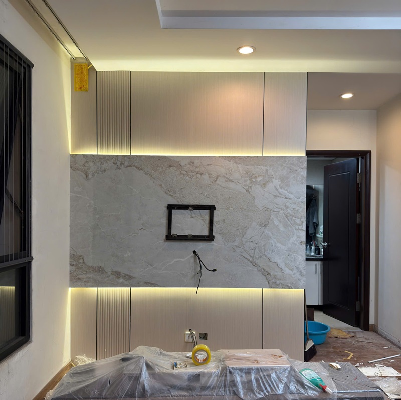 Không chỉ đẹp ở thành phẩm, hình ảnh thi công cũng phản ánh rõ chất lượng cốt lõi của tấm ốp TOPDECO:
